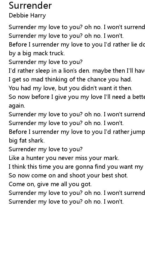 Before I surrender my love to you I'd rather lie down in the street and get hit by a big mack truck.