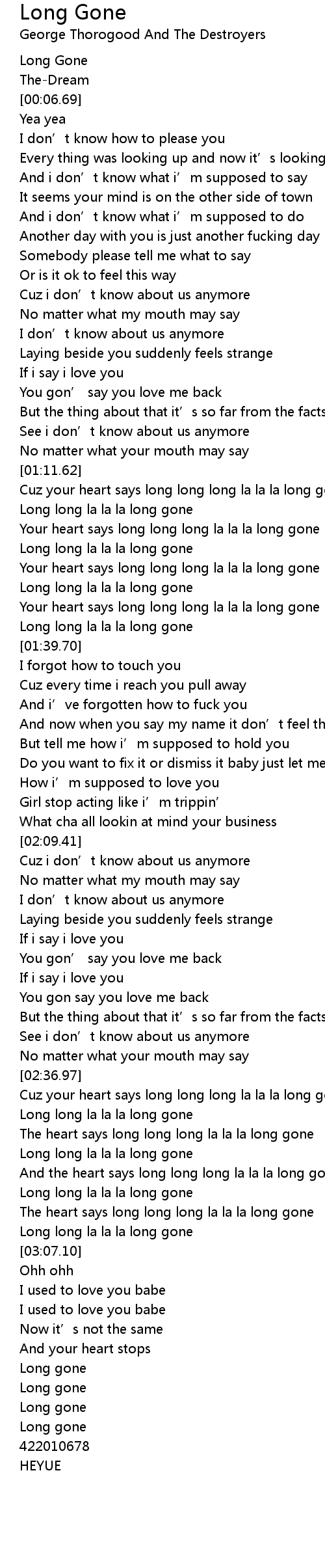| [01:33.28] | Your heart says long long long la la la long gone |