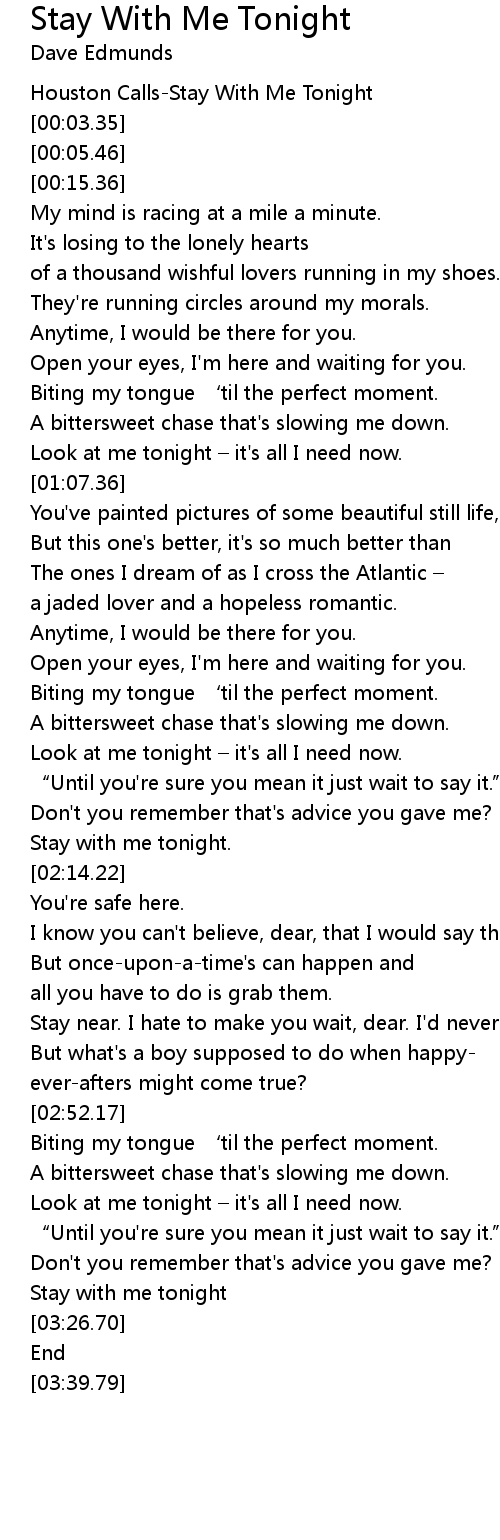 | [00:00.58] | Houston CallsStay With Me Tonight |