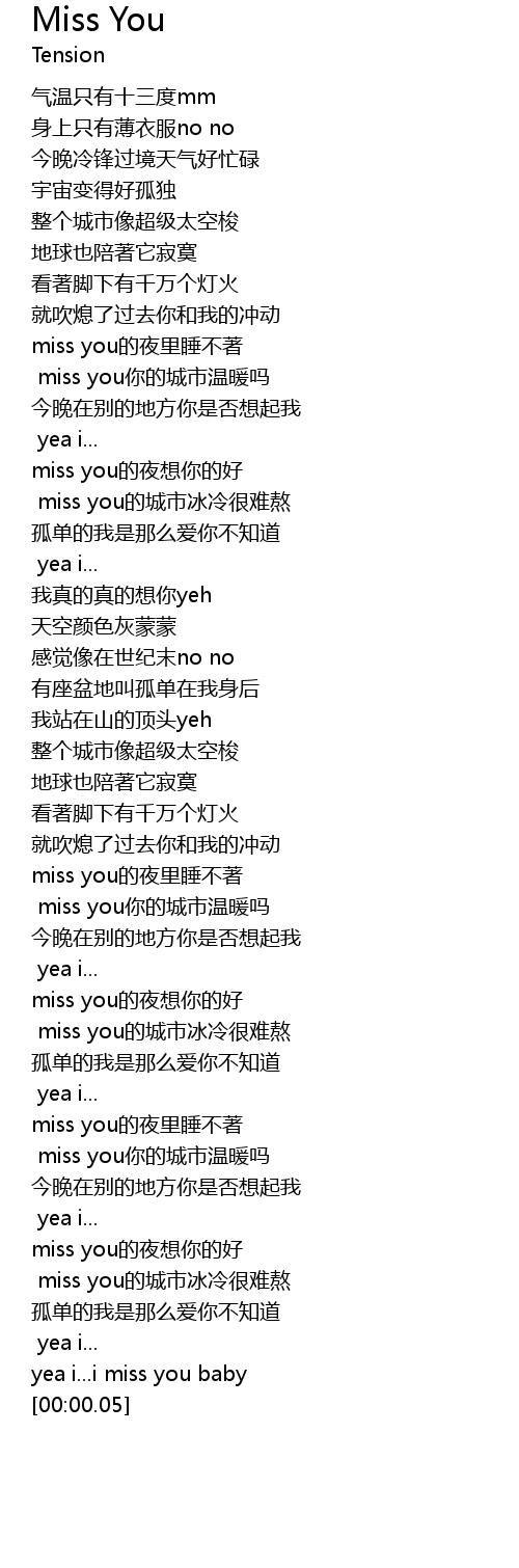 | [01:15.41] | miss you de yè xiǎng nǐ de hǎo |