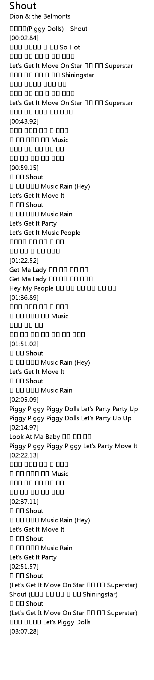 | [02:56.47] | Shout (음악에 몸을 맡긴 넌 나의 Shiningstar) |