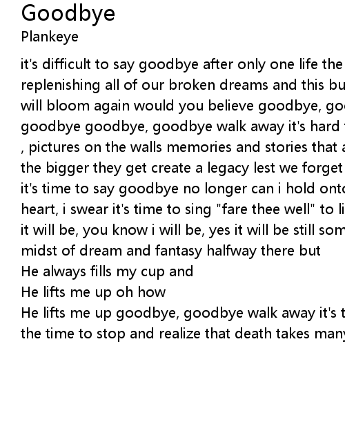 He lifts me up goodbye, goodbye walk away it's time to say goodbye i never took the time to stop and realize that death takes many forms even while alive