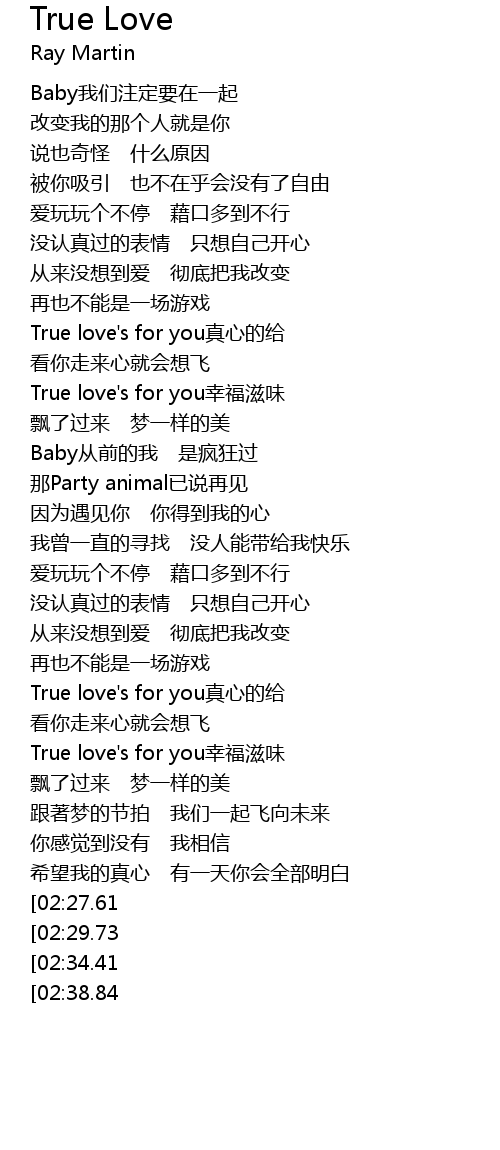 | [02:43.84][02:27.61] | True love' s for you zhen xin de gei |