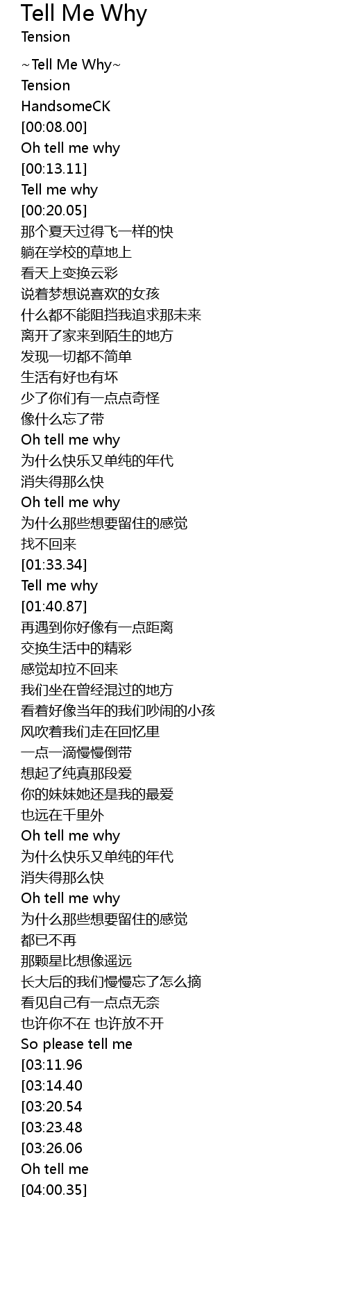 | [00:02.00] | ~Tell Me Why~ |