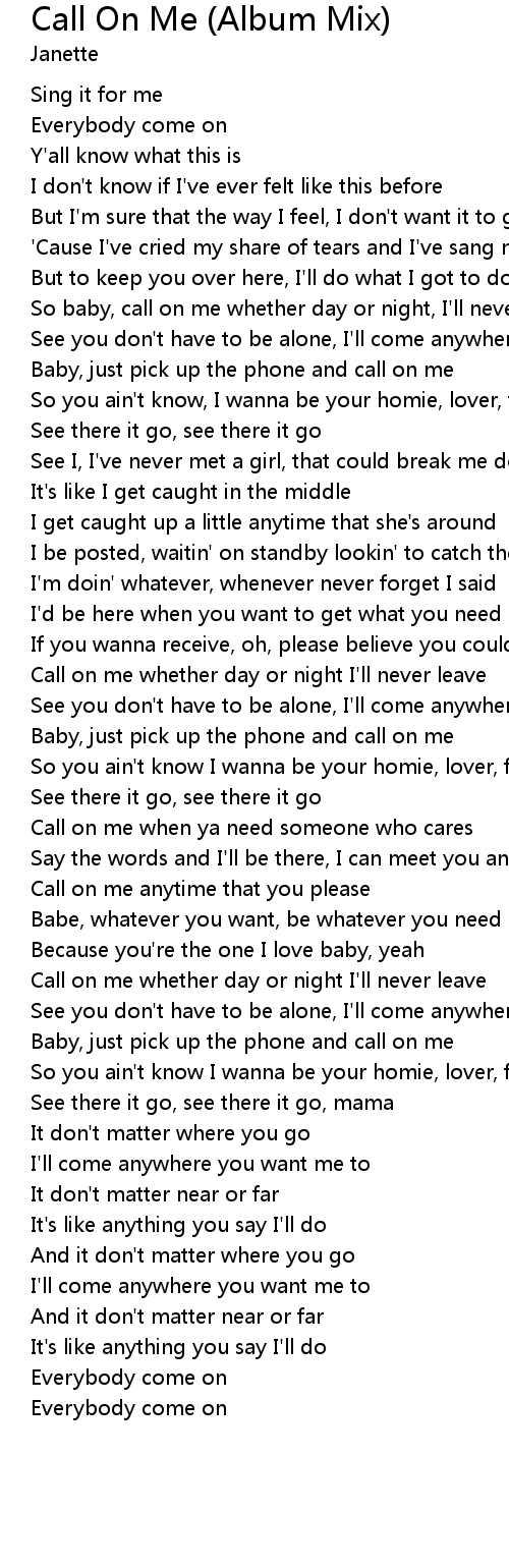 Call on me whether day or night I'll never leave |