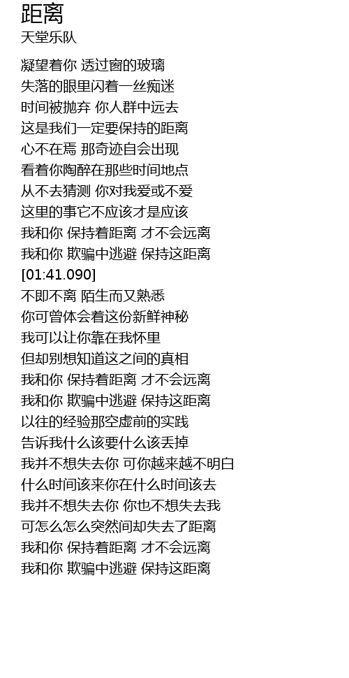 | [01:24.930] | 我和你 保持着距离 才不会远离 |