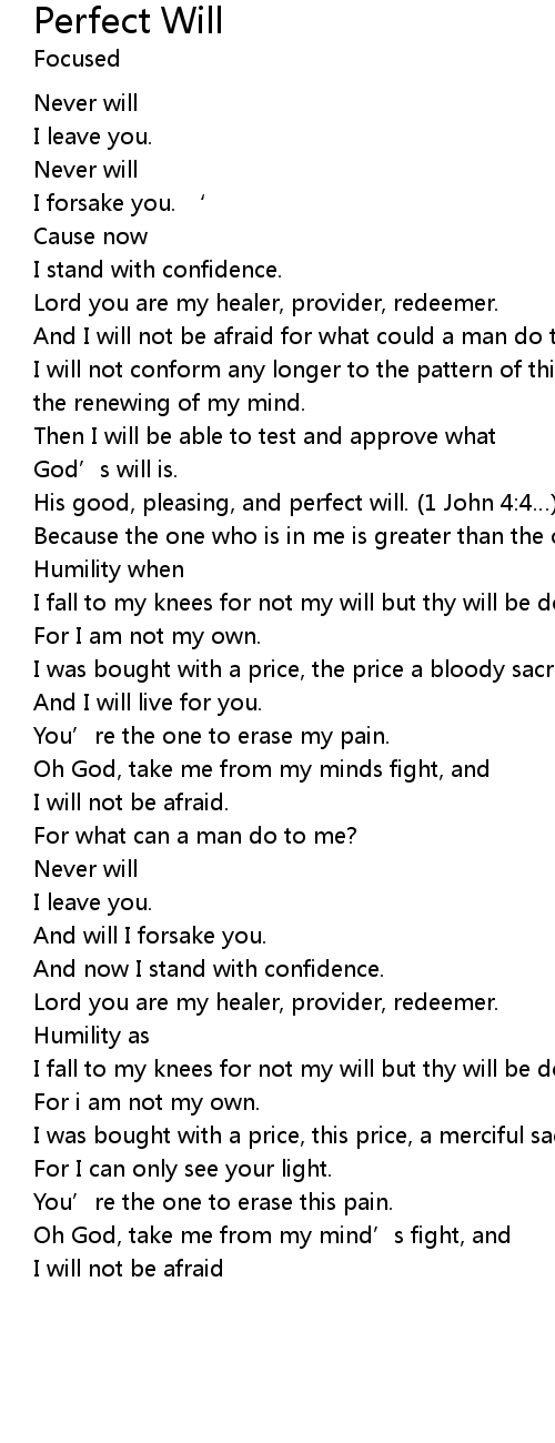 | His good, pleasing, and perfect will. 1 John 4: 4 | |