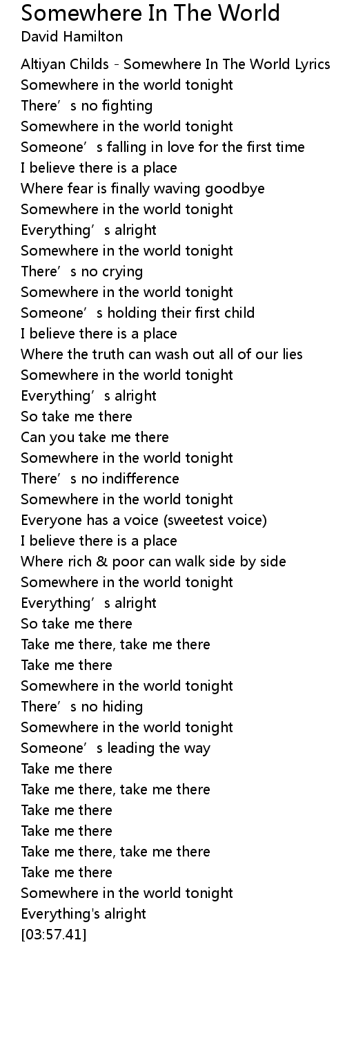 | [00:00.00] | Altiyan Childs Somewhere In The World Lyrics |