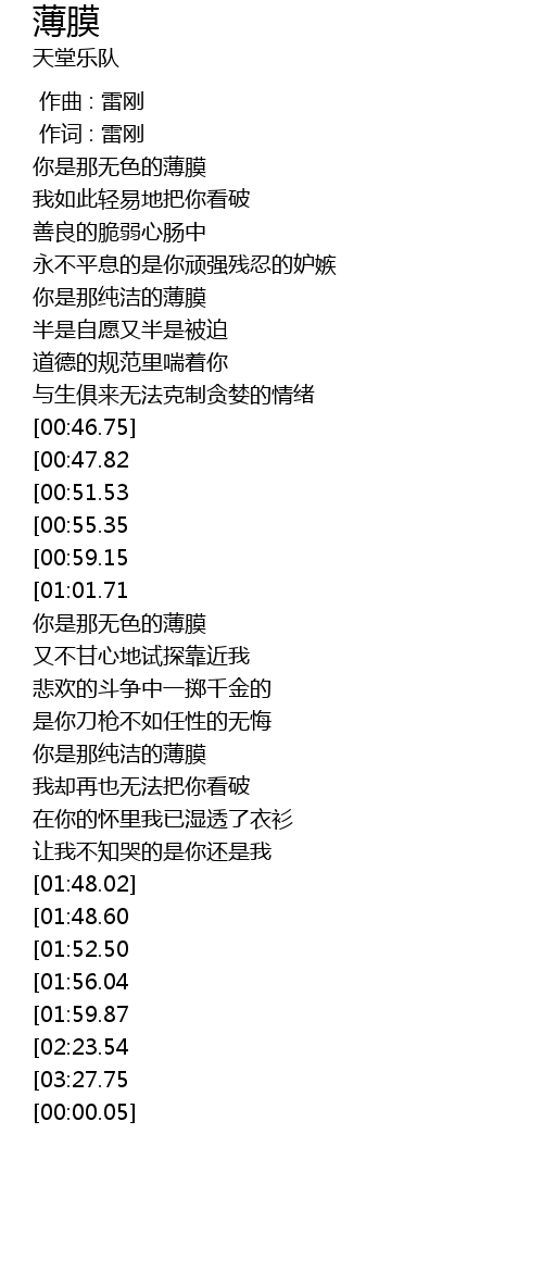| [01:33.32] | 你是那纯洁的薄膜 |