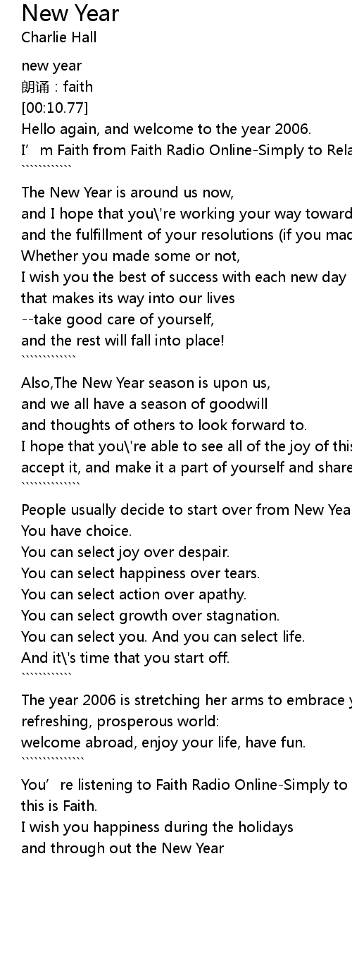 | [00:54.58] | and the fulfillment of your resolutions (if you made any). |