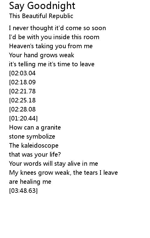 Help me say goodnight |