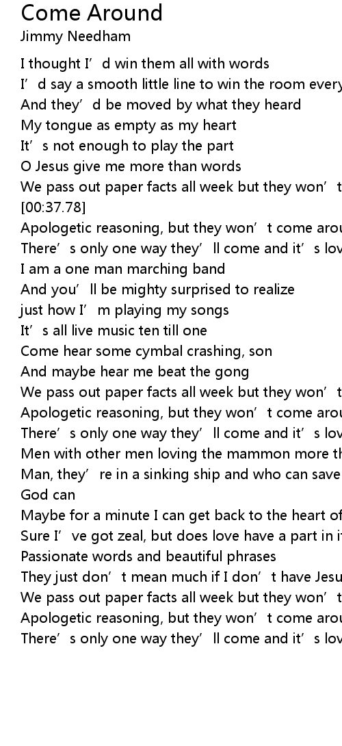 | [00:38.53] | Apologetic reasoning, but they won’t come around, come around |