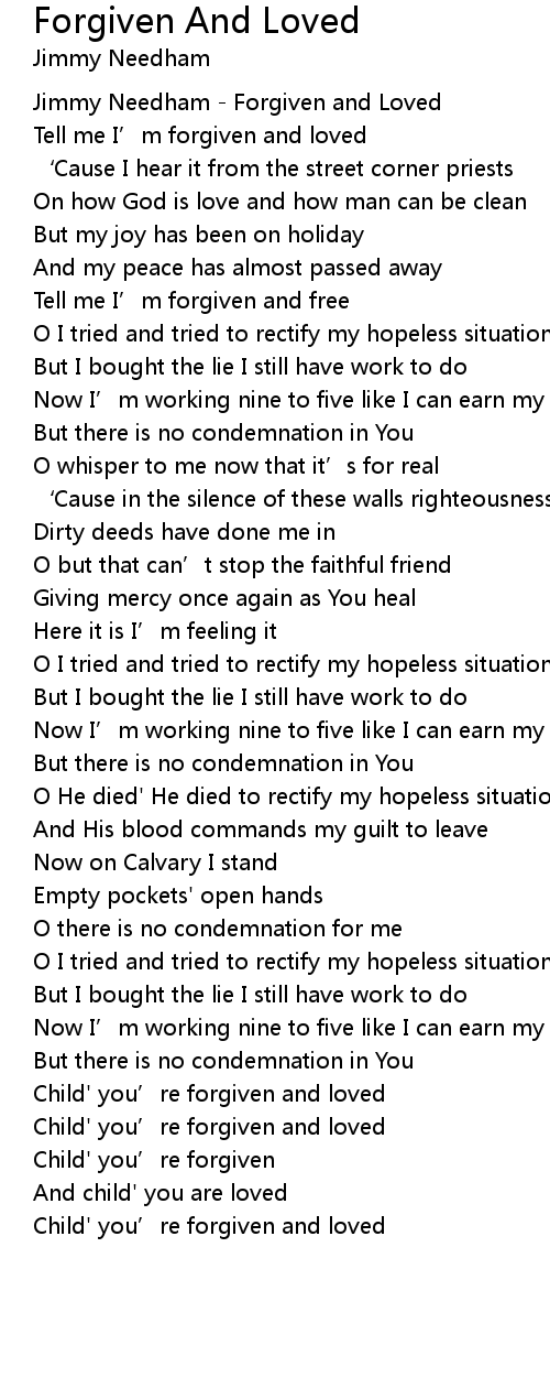 | [00:01.29] | Jimmy Needham - Forgiven and Loved |