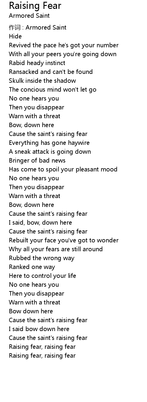 | 歌曲 | Raising Fear |