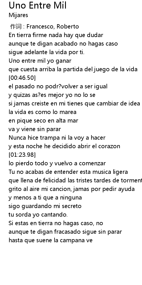 | [00:35.80] | Uno entre mil yo ganar |
