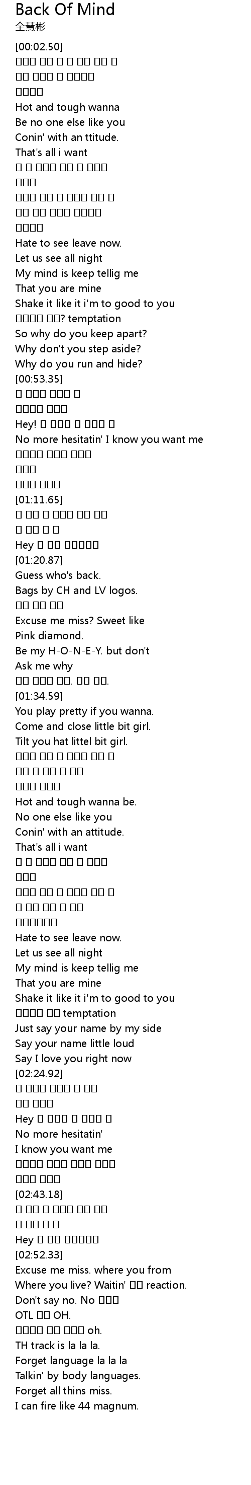 | [02:56.40] | Where you live? Waitin' 너의 reaction. |