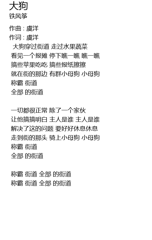 | zǒu dào jiē de nà tóu qí shàng xiǎo mǔ gǒu xiǎo mǔ gǒu | |