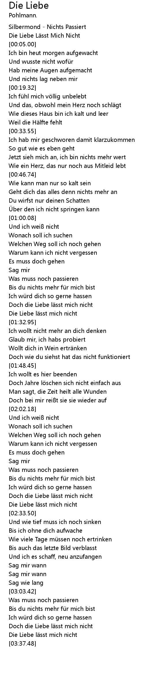 | [03:31.38] | Die Liebe l sst mich nicht |