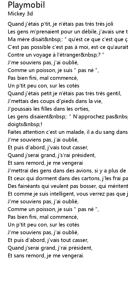 | Les gens m' prenaient pour un de bile, j' avais une t te de playmobil | |