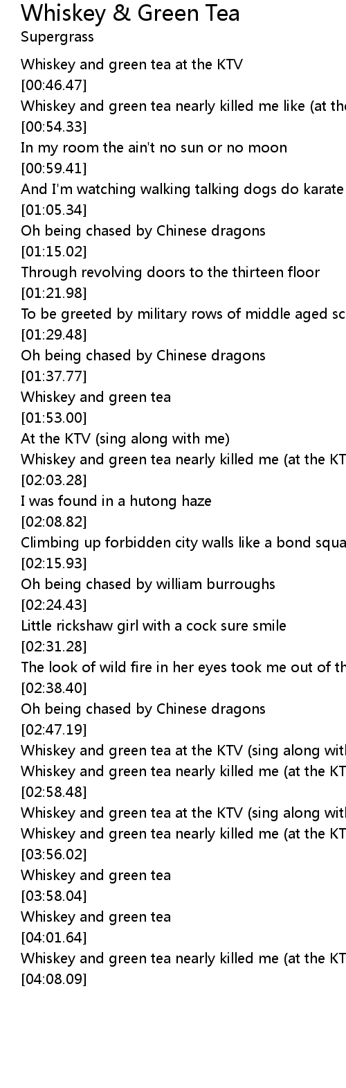 Whiskey and green tea nearly killed me (at the KTV) yeah |