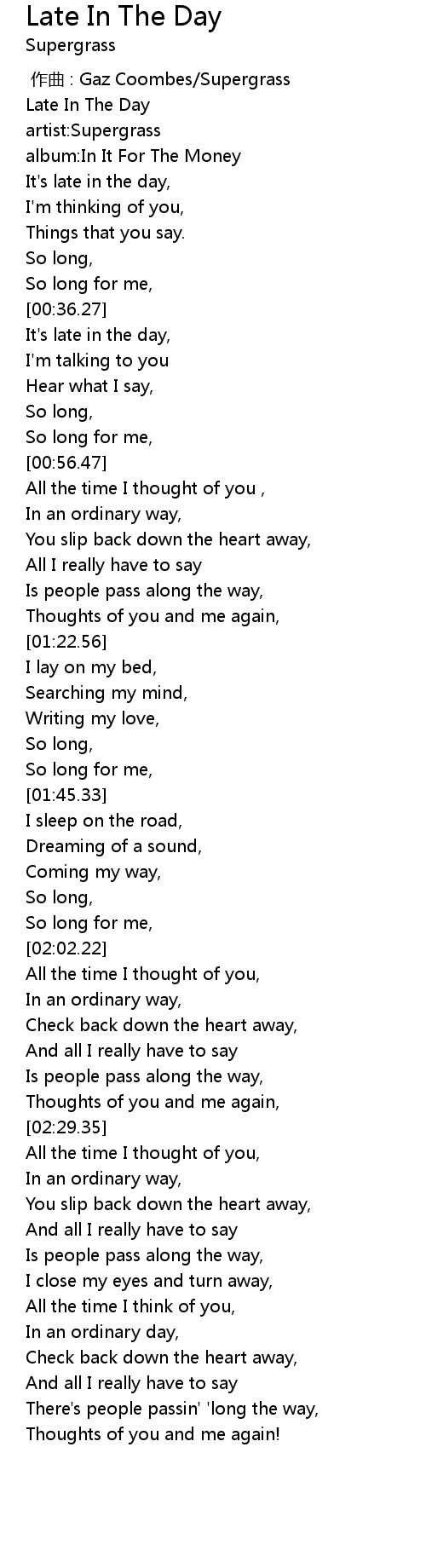| [00:00.00] | 作曲 : Gaz Coombes/Supergrass |