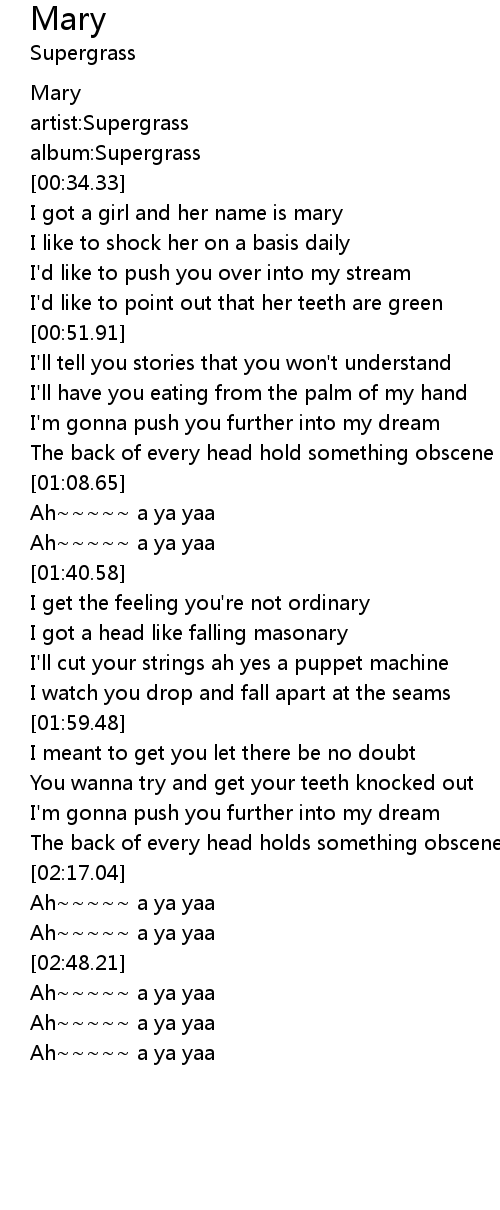 I got a girl and her name is mary |
