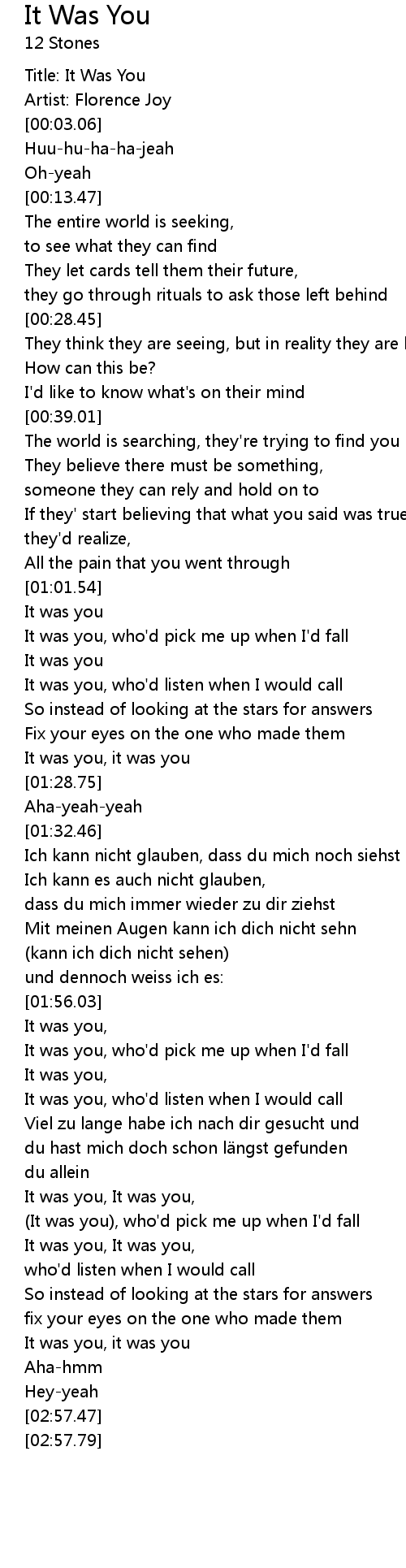 | [02:14.76] | du hast mich doch schon längst gefunden |