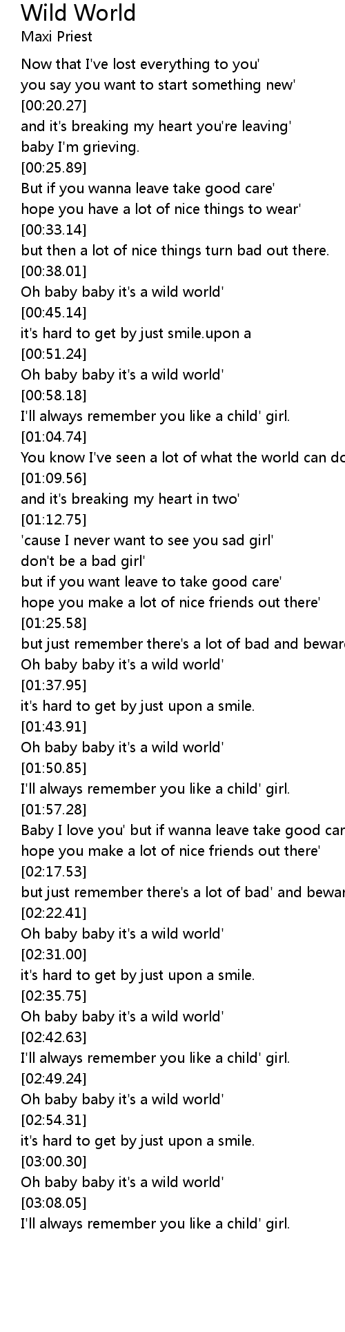 Oh baby baby it's a wild world' |