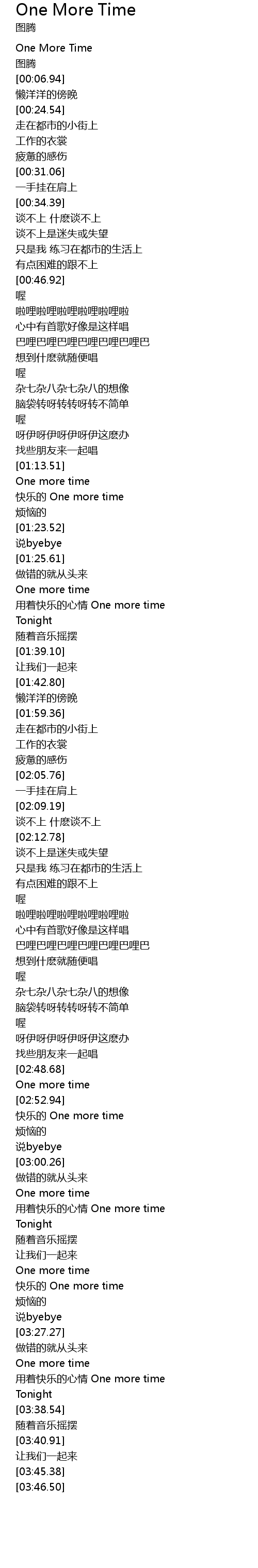 | [03:34.47] | yòng zhe kuài lè de xīn qíng One more time |