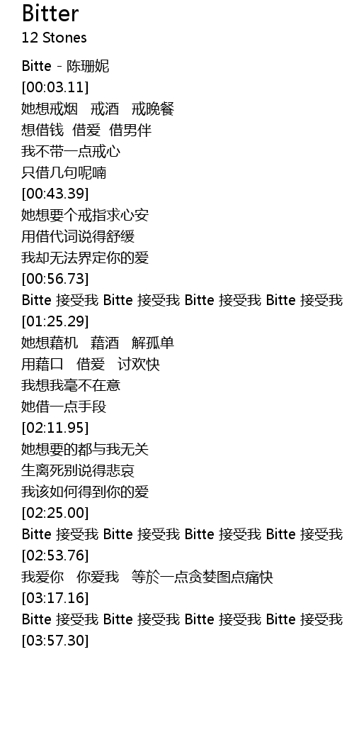 | [03:28.52] | Bitte 接受我 Bitte 接受我 Bitte 接受我 Bitte 接受我 |