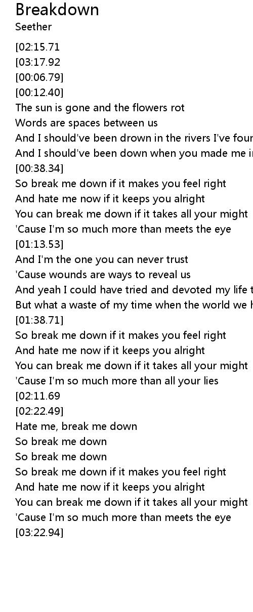 | [00:39.93] | So break me down if it makes you feel right |