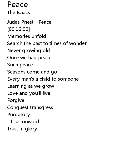 | [00:02.00] | Judas Priest - Peace |