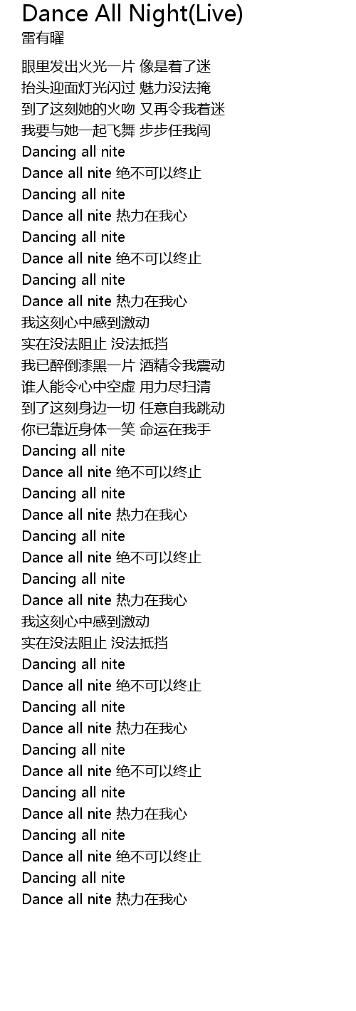 | [01:19.17] | Dance all nite rè lì zài wǒ xīn |