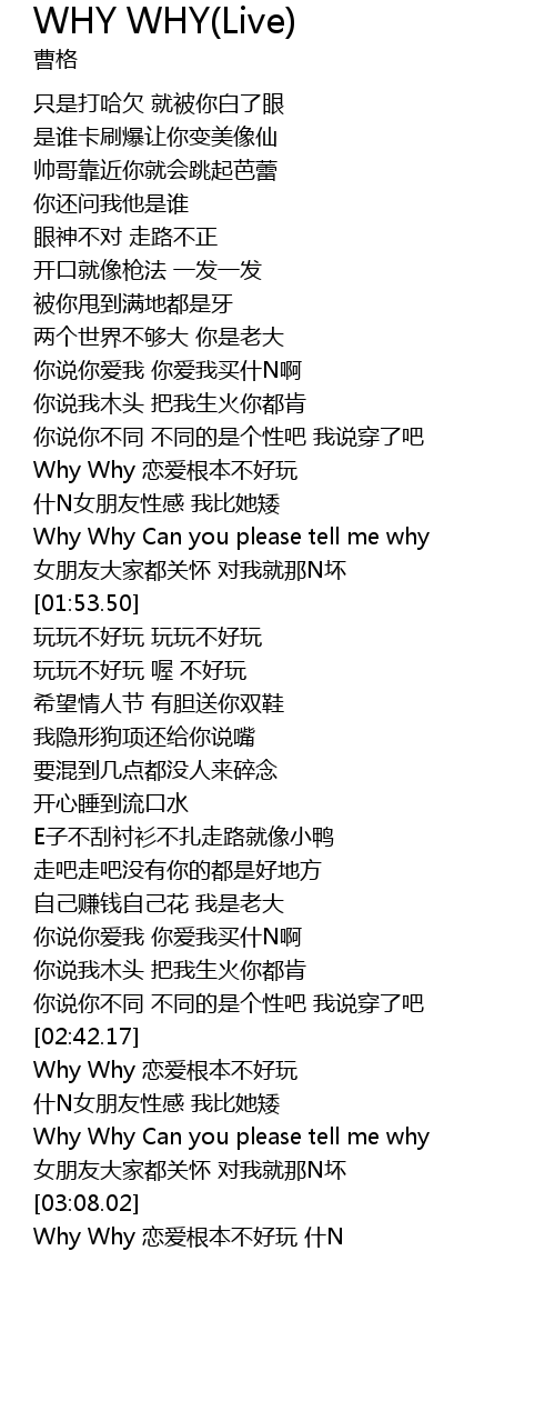 | [02:30.37] | 你说你爱我 你爱我买什N啊 |