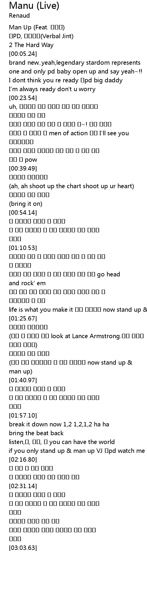 | [00:01.11] | Man Up (Feat. 박미경) |