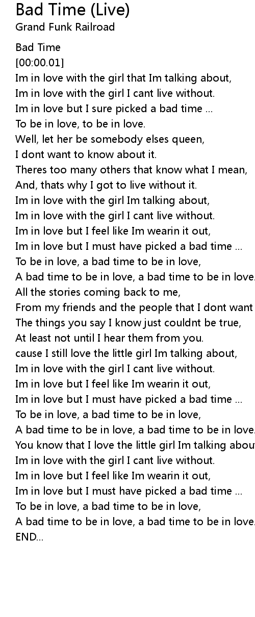 [02:38.81] A bad time to be in love, a bad time to be in love.