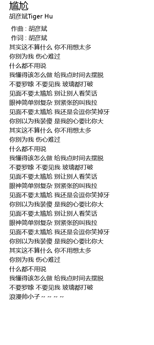 | [00:45.28] | 见面不要太尴尬 别让别人看笑话 |
