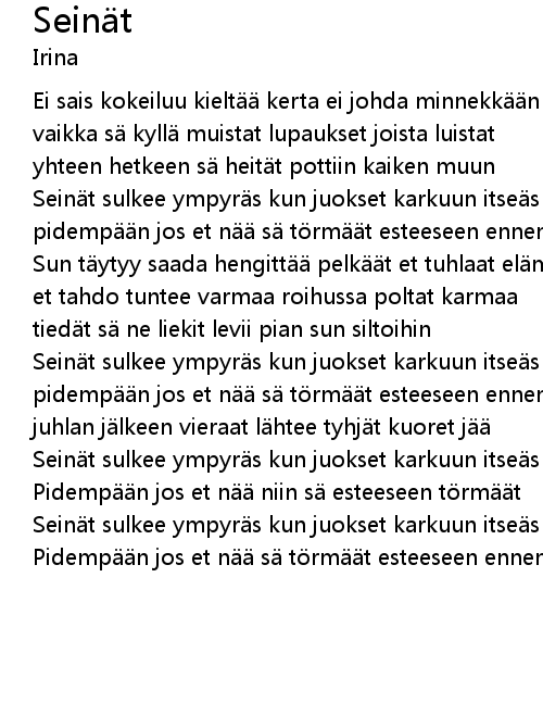| 歌曲 | Seinät |