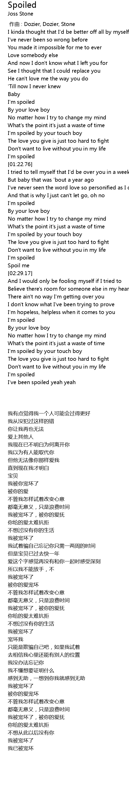 | [03:41.56] | I' ve been spoiled yeah yeah |