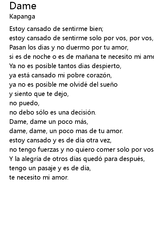 | dame, dame, un poco mas de tu amor. | |