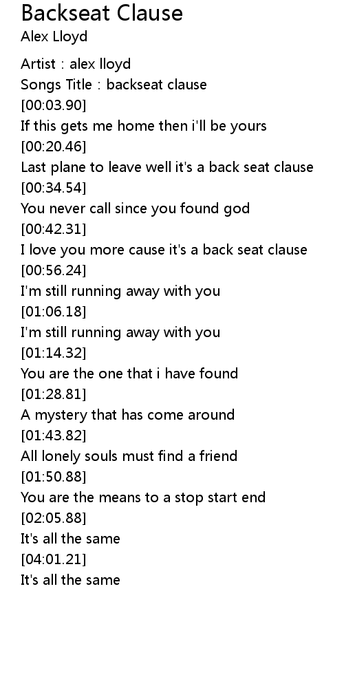 | [00:47.75] | I love you more cause it's a back seat clause |