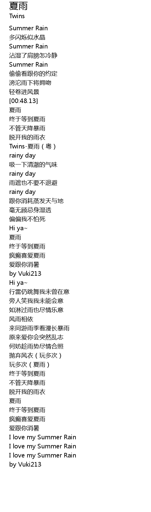 | [03:18.78] | 疯癫喜爱夏雨 |
