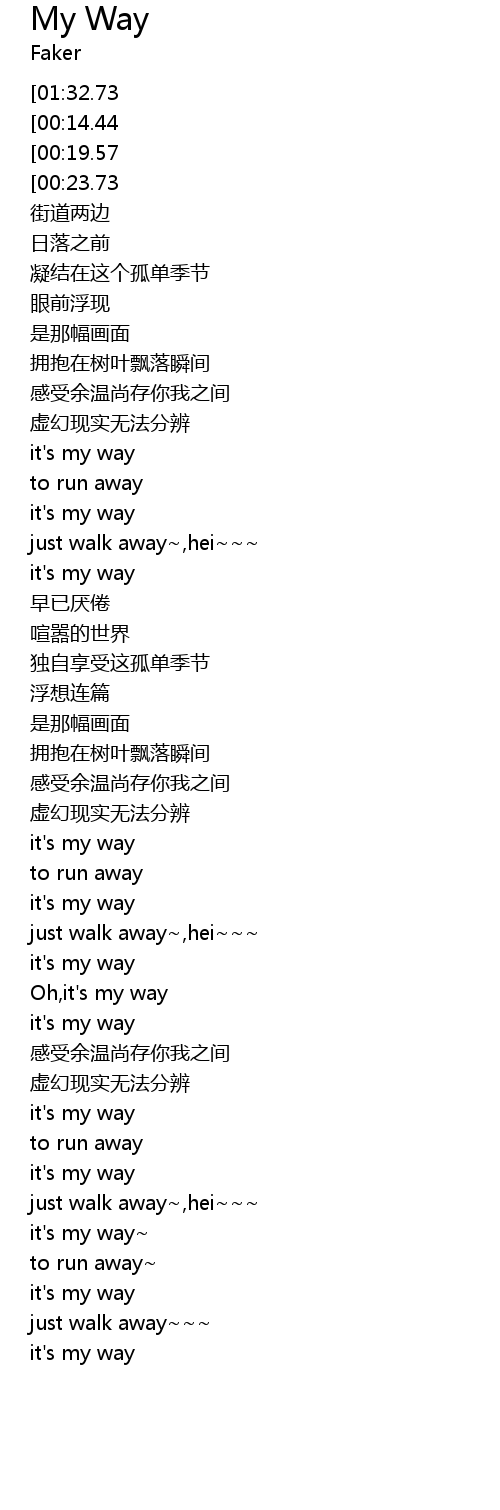 | [03:07.99][01:32.73][00:09.19] | my way |