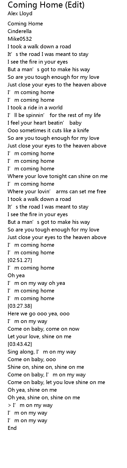 | [03:23.12] | I' m coming home |