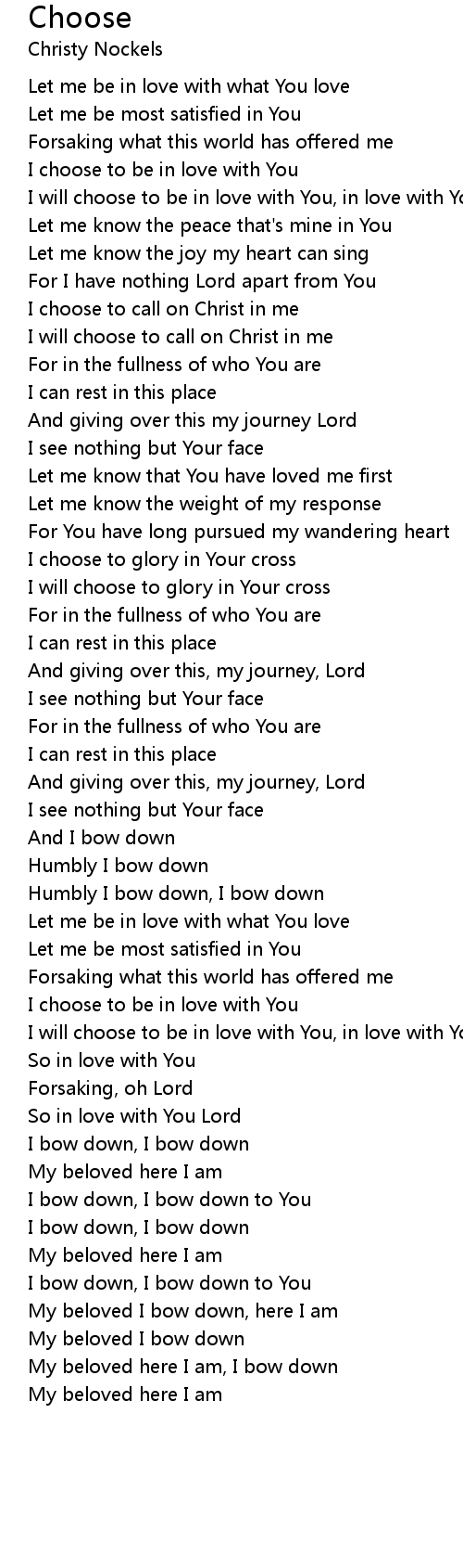 I will choose to be in love with You, in love with You, oh Lord |