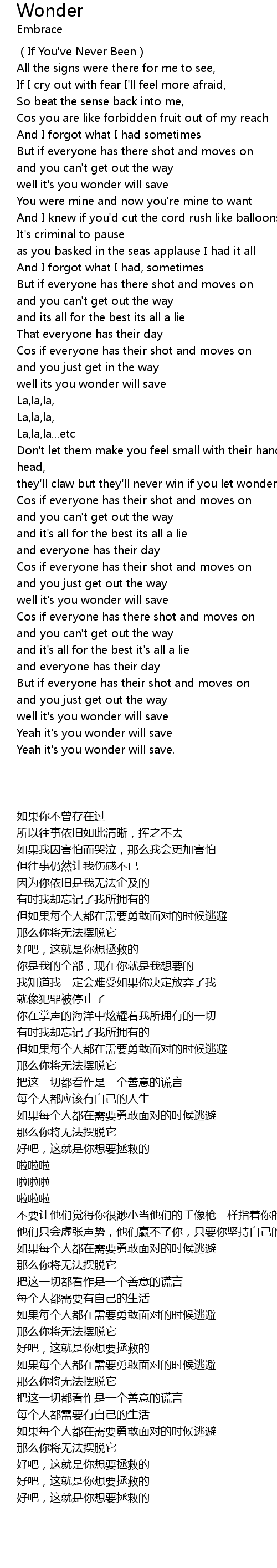 | [02:49.820] | they' ll claw but they' ll never win if you let wonder in... |