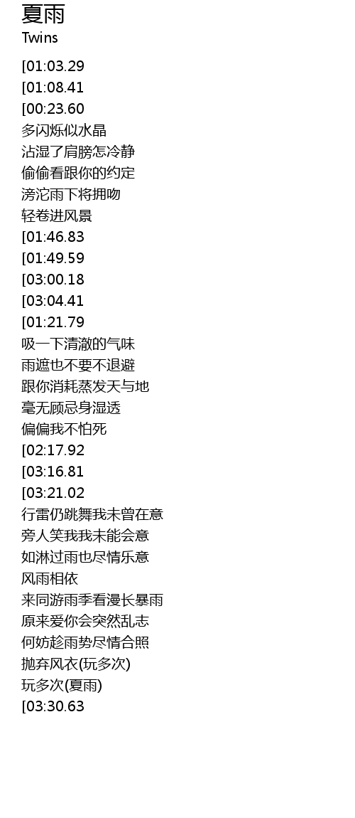 | [00:11.00][01:03.29][02:01.41][03:39.06] | Twins-夏雨(粤) |