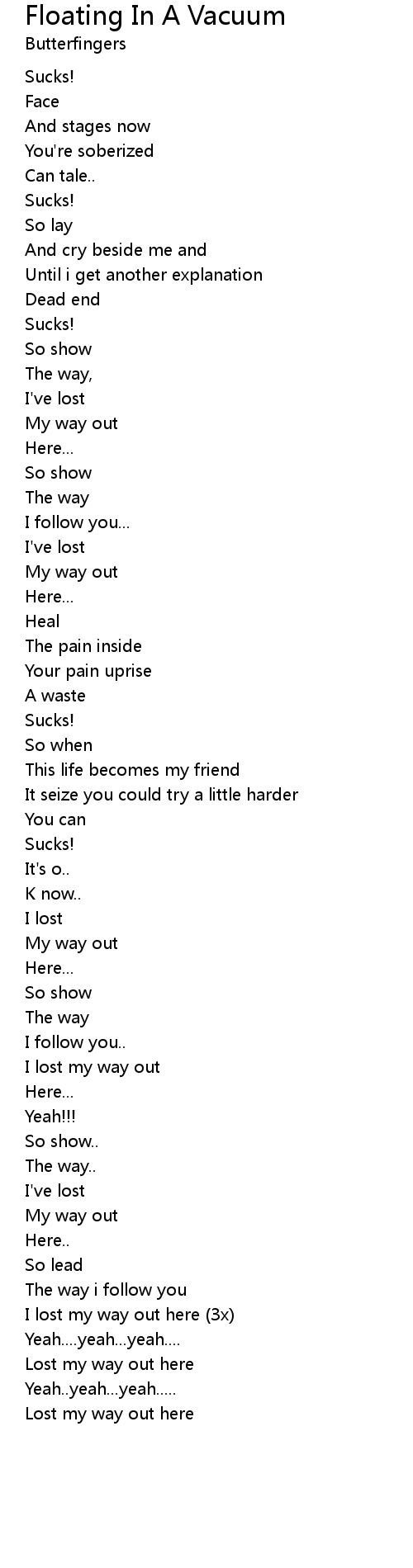 Floating In A Vacuum 歌词