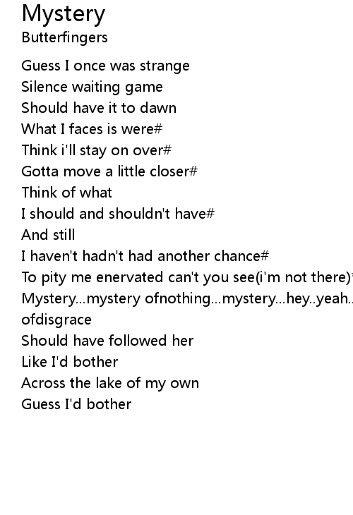 | Mystery...mystery ofnothing...mystery...hey..yeah..yeah..yeah..mystery ofdisgrace | |