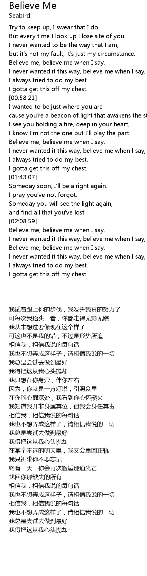 Believe me, believe me when I say, |